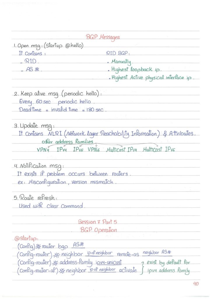 - BGP Messages: Open, Keepalive, Update, Notification, and Route Refresh.