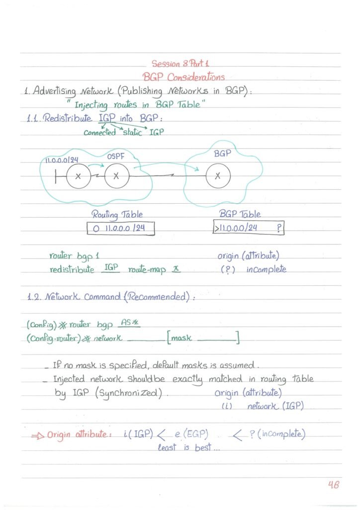 - Route Advertising: Network command, redistribution, aggregation, and pitfalls.