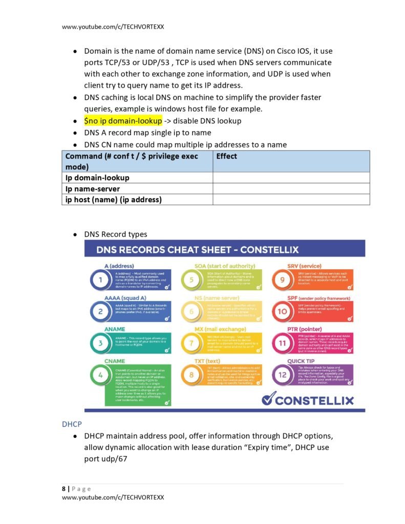 - TCP vs. UDP | DNS & DHCP | Cabling & Architecture