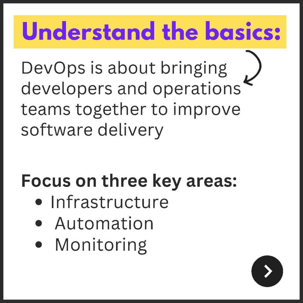 Dive into the core practices that define DevOps, including continuous integration, continuous delivery, version control, and infrastructure as code. Establish a solid foundation in the essential building blocks of DevOps.