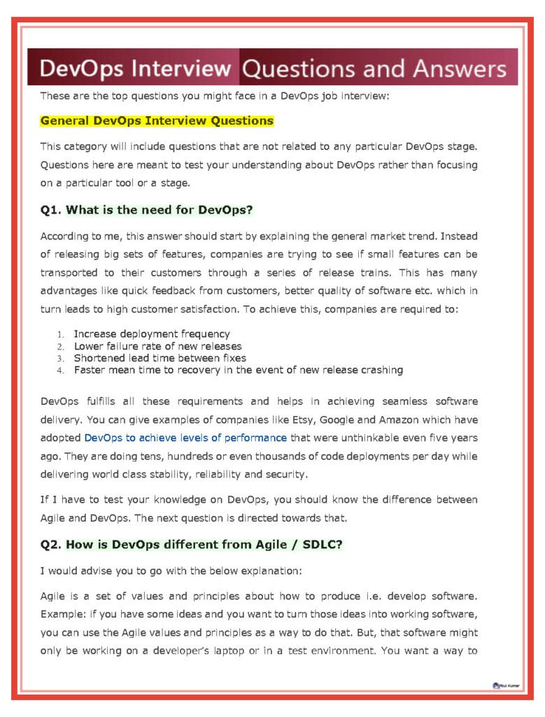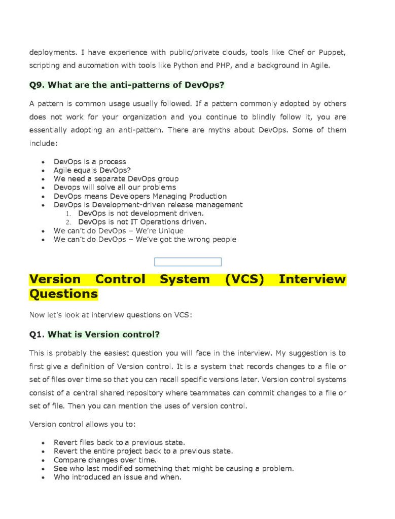 Preparing for a DevOps interview can be a challenging task, as it requires a deep understanding of various DevOps concepts, tools, and practices. To help professionals excel in their DevOps interviews, this document provides a comprehensive collection of DevOps interview questions and answers.