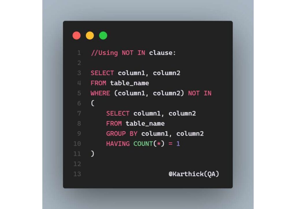 - Removing Duplicate Rows: Discovering techniques to eliminate duplicate rows from a table using SQL’s DISTINCT keyword, GROUP BY clause, and the concept of temporary tables.