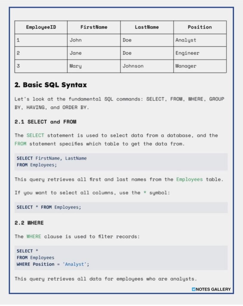 - Data Manipulation: Dive into the world of data manipulation with SQL, covering topics such as filtering data using the WHERE clause, sorting results, and performing calculations using aggregate functions.
