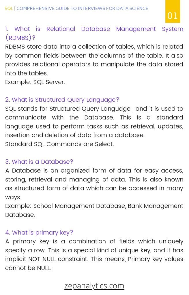 With our “SQL Interview Questions PDF,” you’ll have a comprehensive resource that covers a wide range of SQL interview topics, enabling you to prepare effectively and confidently for your upcoming interviews. This guide will equip you with the knowledge, answers, and explanations to tackle SQL-related interview questions, impress interviewers, and secure your dream job in the field of database management or data analysis.