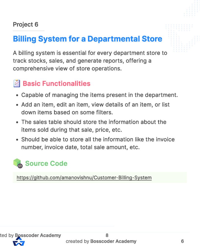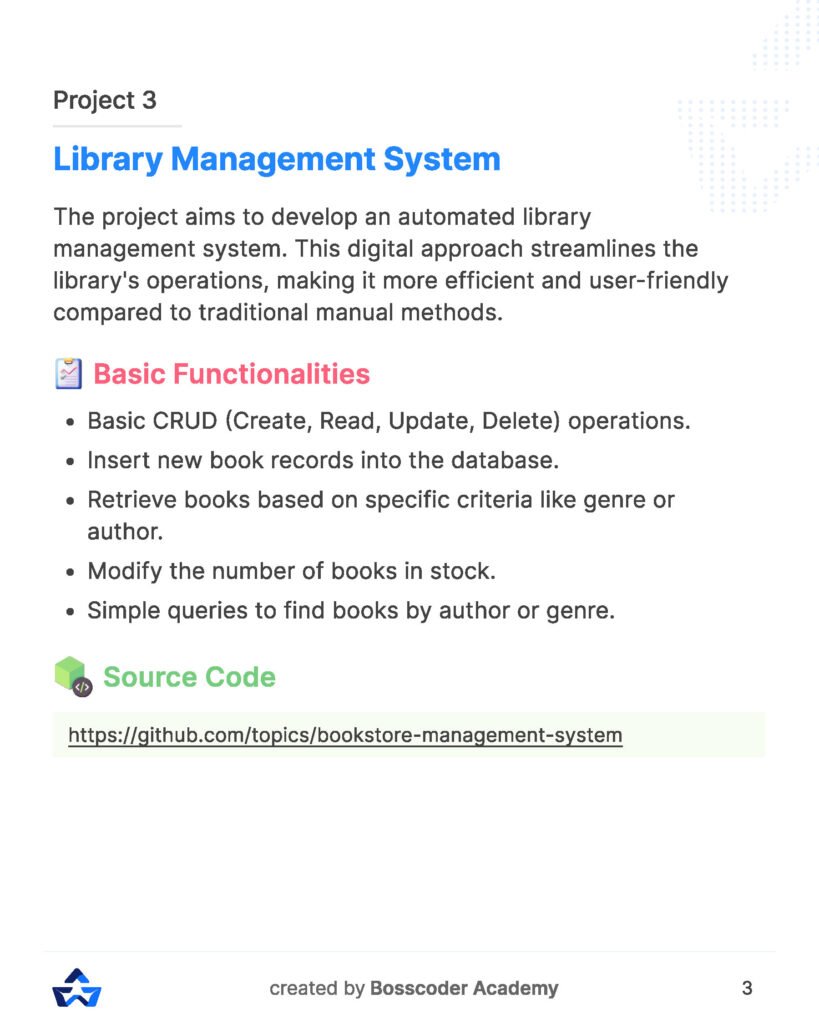 - Practical Insights: Real-world examples and case studies are integrated into the content, offering practical insights into SQL project development. Users not only learn SQL concepts but also understand how to apply them in meaningful and impactful ways.