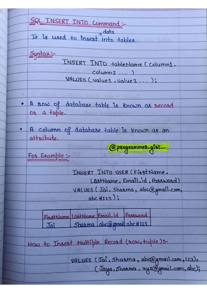 These handwritten notes are not just a study aid; they are a roadmap crafted to help you traverse the complexities of SQL with clarity and understanding.