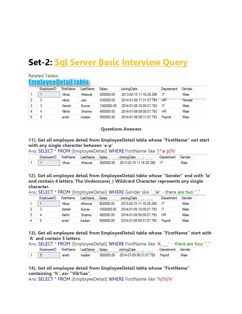 c. Quick Reference: As you prepare for your SQL Server interview, the PDF serves as a quick reference guide. You can review specific questions and answers, reinforcing your knowledge and boosting your confidence.
