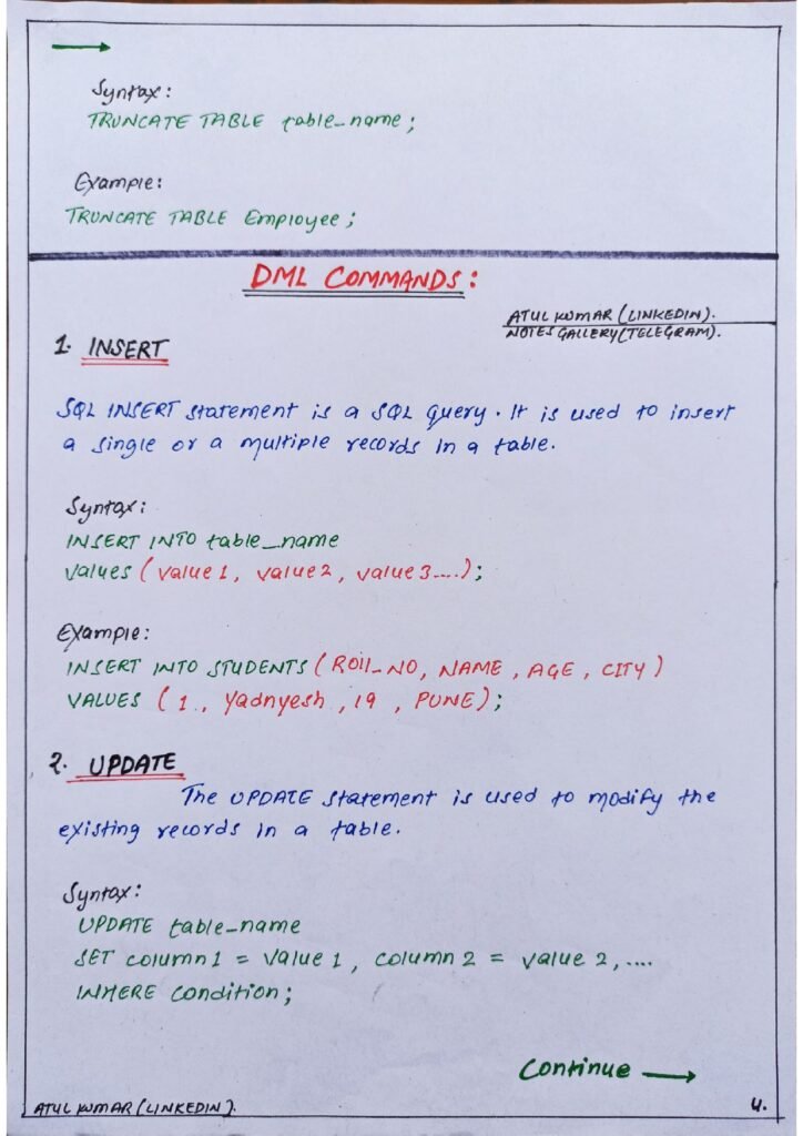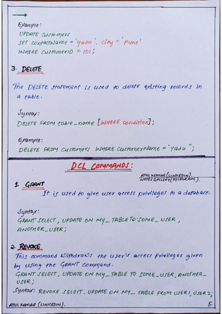 That’s why I have created these SQL short notes handwritten in PDF format, which cover the most important topics and concepts of SQL in a concise and easy-to-understand way.