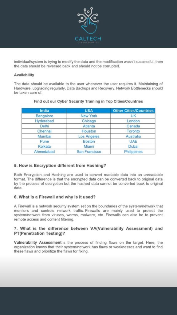 - What is the difference between Vulnerability Assessment (VA) and Penetration Testing (PT)?